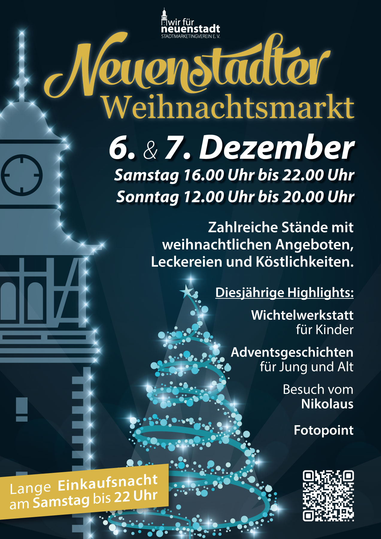 Der Neuenstadter Weihnachtsmarkt soll wieder ein schönes, abwechslungsreiches und auch besinnliches Wochenende werden, bei dem Besucher mit Freunden und Bekannten, Familien mit Kindern und Großeltern, fernab vom Alltagsstress und in weihnachtlicher Stimmung schöne Stunden verbringen können.
